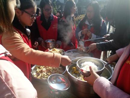 在福利院,有的志愿者陪老人们聊天、下棋,搀扶老人们在院子里散步,为老人按摩、捶背、擦脸;也有志愿者帮老人们打扫卫生、整理内务,把洗好的水果分发给老人们,为他们吟唱经典的红色革命歌曲。细心的志愿者们还为老人们准备了丰富多彩的节目:小品、话剧、朗诵及各种才艺秀展示,赢得了老人们的阵阵喝彩声、欢呼声,精彩绝伦的表演把现场氛围推向高潮。中午时分,大家为老人们精心准备了排骨汤,在暖阳的照耀下,映衬着老人们脸上温暖的笑容,现场氛围温馨而和谐。在志愿者们亲切的关怀和陪伴下,老人们也渐渐敞开心扉,为大家讲起了自己年轻时的一些趣事。
