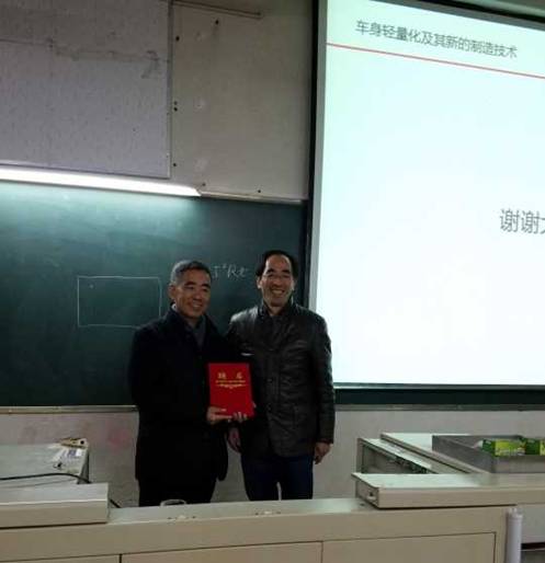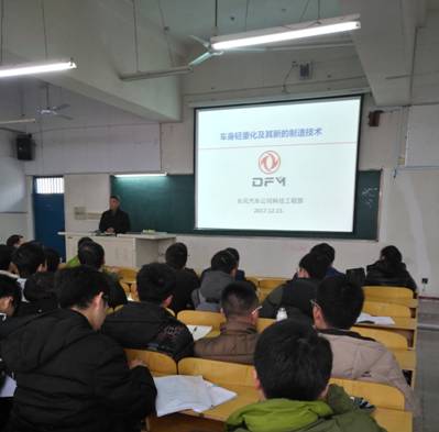 2017年12月15日下午,东风汽车集团有限公司科技部研究员级高工、我校1987届校友刘忠厚在2203教室为我校师生作了题为“车身轻量化及其新的制作技术”的精彩学术报告。本次学术报告由材料学院院长曾大新教授主持,材料学院全体老师、部分学生,东风公司部分专业厂技术人员有幸聆听了此次报告。