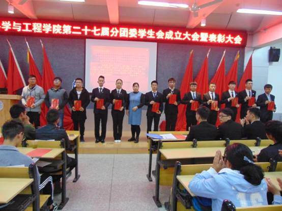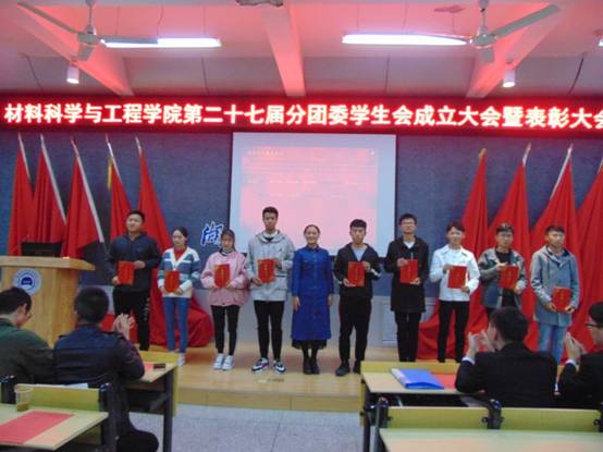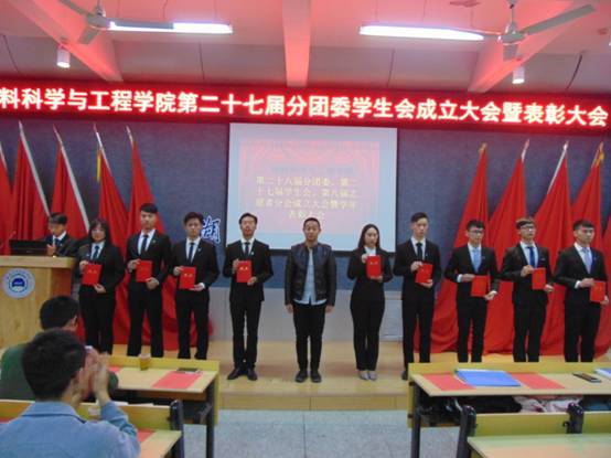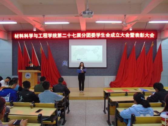 11月4日晚上18:30,材料学院新一届学生组织成立大会暨2018年运动会表彰大会在6113教室隆重举行。院分党委书记杨陵郧,副书记崔海英,分团委书记骆无思,学工办张国法、詹韩琼老师,18级班主任李志辉、李亚洲老师,第二十七届分团委学生会、第八届志愿者分会全体成员及全体大一、大二同学参加此次会议。大会由我院学生会秘书长朱卓君主持。