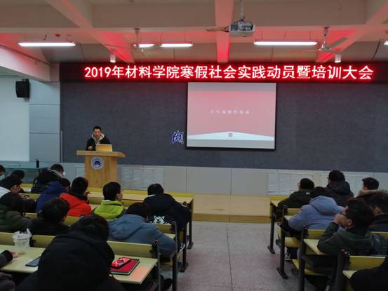 2019年1月8日20:30,材料学院在6113教室举行了2019年寒假社会实践宣传动员暨安全教育大会。会议由我院分团委书记骆无思主持,学院18级全体班主任、材料成型及控制工程教研室郭睿老师、全体2018级新生及导生参加。