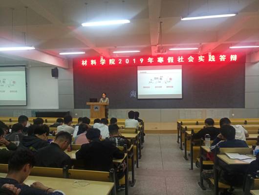 为积极引导我院青年学生在社会实践中了解国情、感知社情、体察民情,在实践中“受教育、增才干、作贡献”。4月14日晚 ,材料学院在6113教室举行了2019年寒假社会实践公开答辩会。分党委副书记崔海英 、分团委书记骆无思参加答辩会并担任评委,参与此次答辩的共有8个班级推选出的8支优秀团队(个人)。