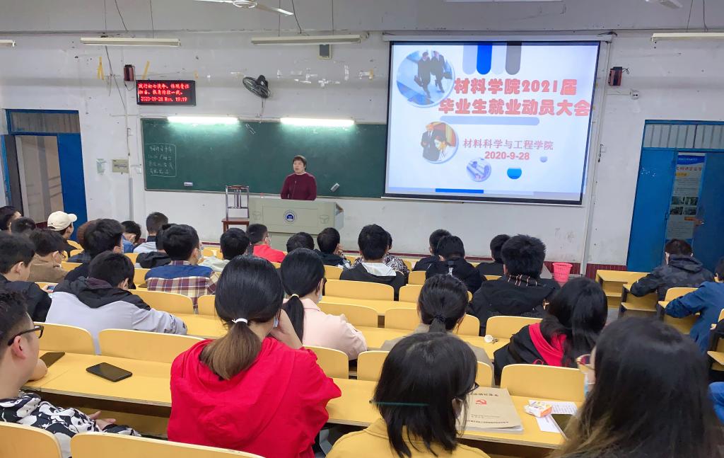 为引导毕业生积极就业、尽早就业、高质量就业,9月29日晚,材料学院在2101教室召开2021届毕业生就业动员大会。材料学院分党委副书记崔海英,辅导员詹韩琼及全体2021届毕业生参加本次会议。动员会由崔海英主讲。