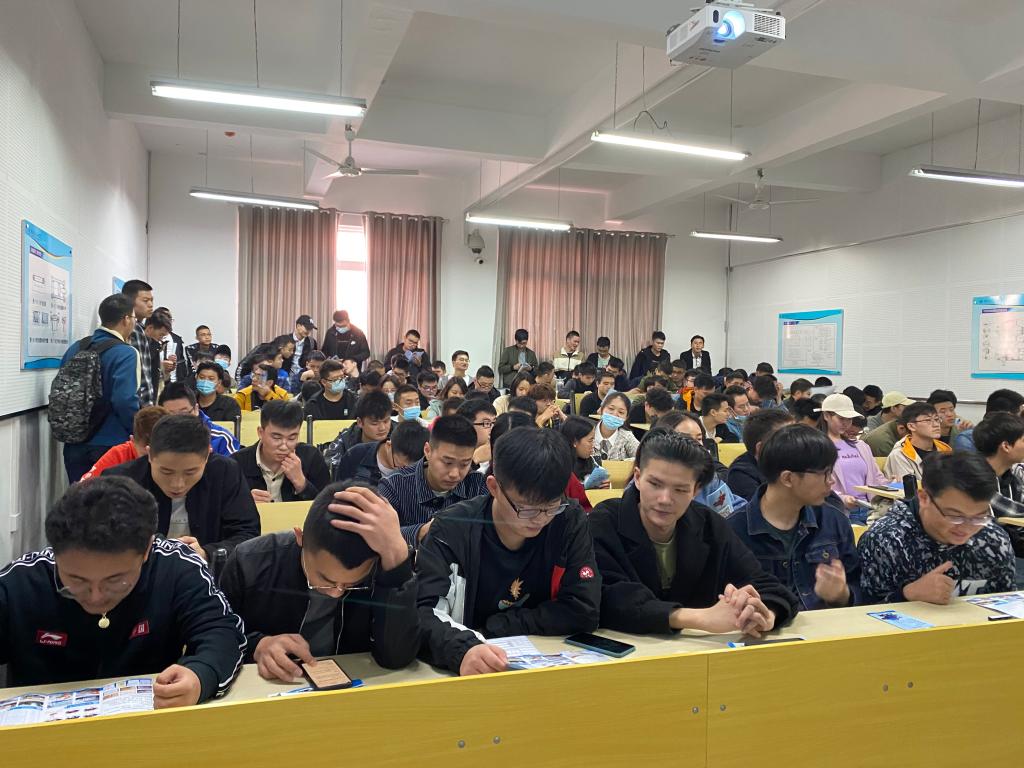 10月19日下午3点,校友李军在教学楼6202教室为2021届100余名毕业生做了企业宣讲,他首先表示,此次来母校招聘,意在为即将毕业的学弟学妹提供工作岗位,解决就业问题;再者为公司招聘实用型人才。随后他详细介绍了企业的概况、人事招聘要求、福利待遇、职业发展等情况,并耐心的回答了同学们提出的相关问题。李总告诫学弟学妹们,就业是每一个大学生都要跨过的一道门槛,是人生的一个重要转折点。作为刚刚踏入社会的大学生,不要好高骛远,要勇于承担责任,承担基层工作,珍惜每一个就业机会,先就业,然后在择业,以饱满的精神对待今后的学习和工作,充分锤炼自我,实现人生的价值。