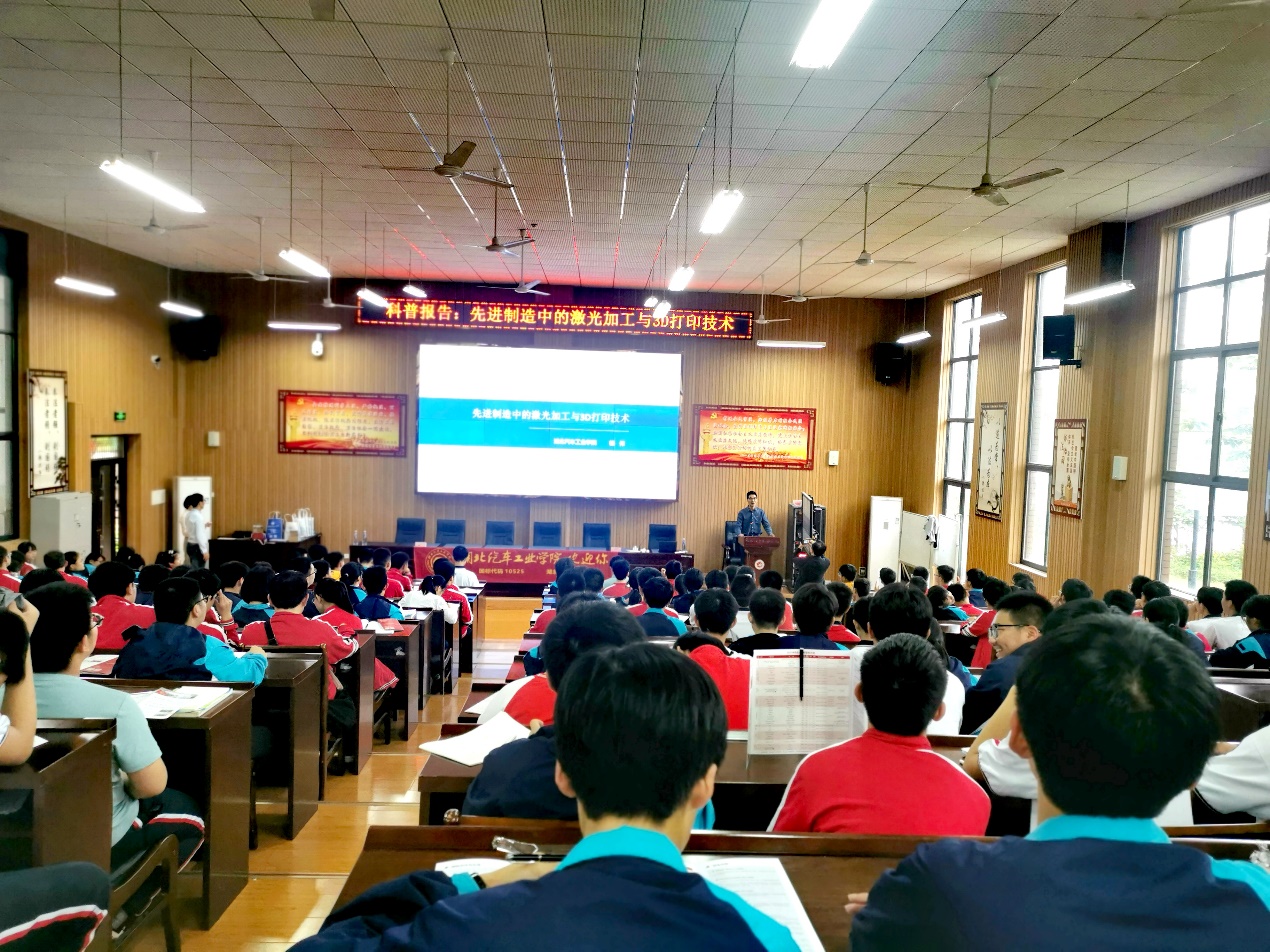 报告会上,播放了《湖北汽车工业学院招生宣传片》,从历史沿革、学校声誉、学科专业、师资力量、人才培养、校园文化等方面,向高中师生进行展示和介绍。学院3D打印与激光加工中心负责人、湖北省机械工程学会特种加工专业委员会理事杨伟老师以《先进制造中的激光加工与3D打印技术》为题,从激光的产生与特性、激光与3D打印技术、激光与材料表面改性、3D打印在生产生活中的应用等方面进行了深入浅出的讲解,激发高中生对科技作品创作的热情及报考我校的积极性。活动现场,高中生详细询问了我校的专业设置、就业方向和往年录取分数等热点问题