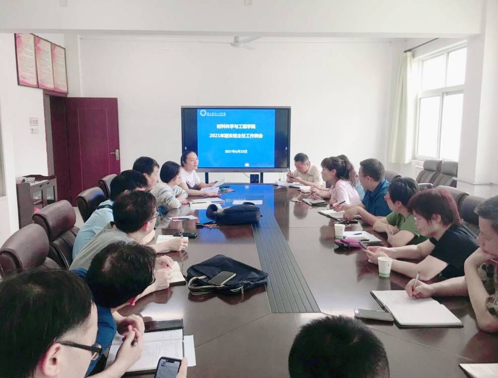 6月24日下午,材料学院在506会议室召开期末班主任工作会议,会议对期末学生教育管理工作进行了安排和部署。分党委书记杨陵郧和全体班主任、辅导员参会。会议由学工办主任詹韩琼主持。
