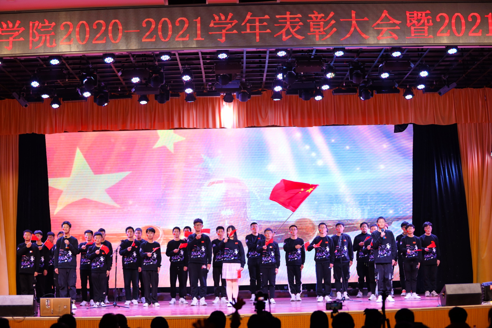 本次活动筹办时间两月有余,参赛队伍为2021年新生班级,必唱曲目为校歌《点亮梦想》,自选曲目为爱国主义红歌。决赛现场,八支参赛队伍风采各异、创意十足,一首首合唱唱出了澎湃的热情,昂扬的斗气。在寒冷却又火热的冬夜校园,徜徉着爱国之歌、青春之歌,充分展现了新时代的青年大学生的家国情怀。