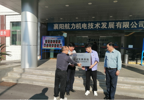签约仪式后,李峰光副院长为航力机电技术有限公司颁发“湖北汽车工业学院实习实训基地”牌匾,并与航利机电资源部雷部长及文宣部何部长等人合影留念。