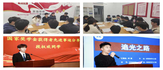 为激励全院学生追光前行、锐意进取、成长成才,12月4日,材料学院在李五公寓“一站式”社区举行“追随光,成为光”——国奖、国励志获奖者经验交流分享会。2023年国奖获得者段权欢,国励志获奖者周方珂、成勇强作为代表进行分享,分享会由辅导员李志强主持。