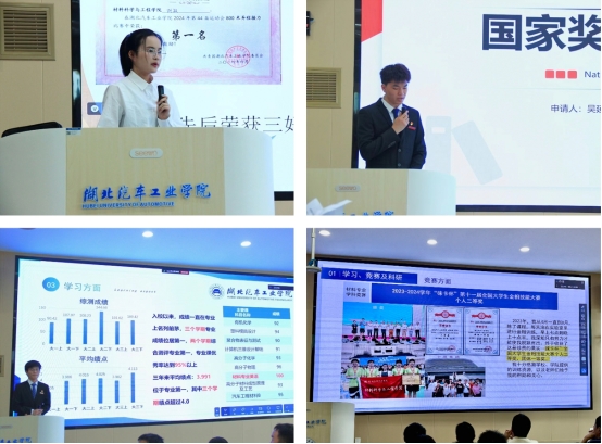 答辩会上,四位同学围绕思想品格、学习成绩、学生工作、社会实践、科技创新等方面进行个人风采展示,参与答辩的学生依次上台,他们自信满满地展示了自己在过去一年中的丰硕成果,分享各自在学习、生活、竞赛等方面的成长和感悟,彰显了新时代材工学子勤奋好学、斗志昂扬、勇于担当的良好精神面貌。