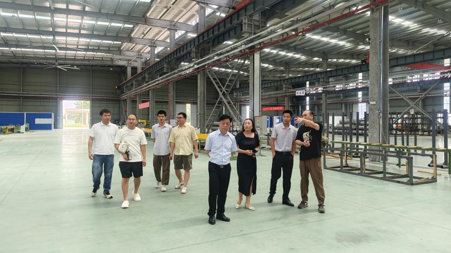 随后一行人前往湖北辰铭铝业科技有限公司车间实地考察,企业负责人就企业目前的生产线、产品、业务领域等进行了详细介绍,并表示后期开展深入研究探讨。