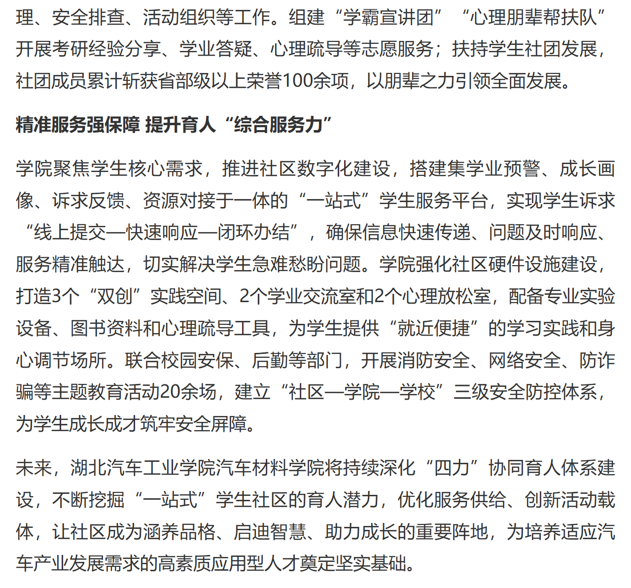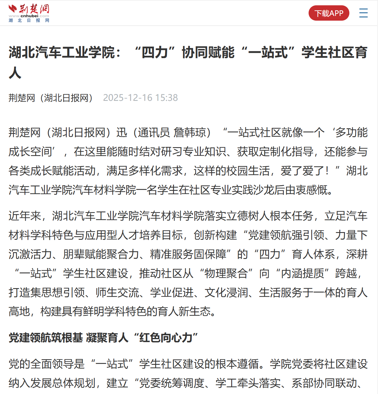 湖北汽车工业学院:“四力”协同赋能“一站式”学生社区育人