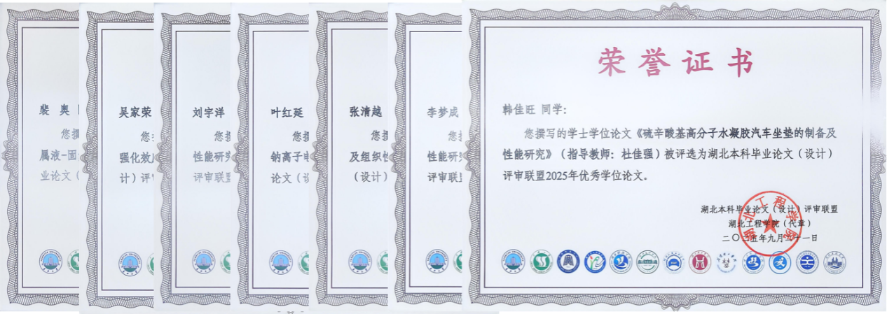 图1 汽车材料学院2025届湖北省本科优秀学位论文证书