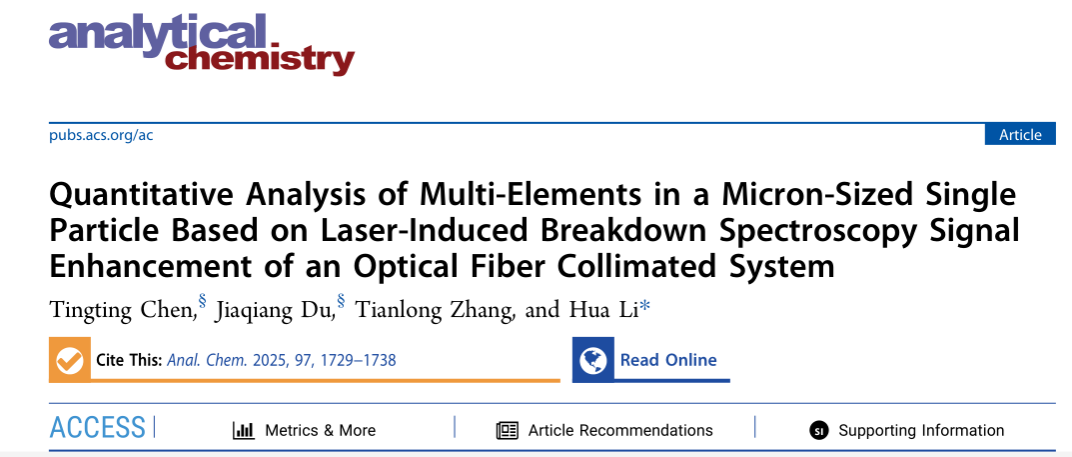 近日,我院青年教师陈婷婷博士在分析化学领域取得重要进展,其作为第一作者的研究成果“Quantitative Analysis of Multi-Elements in a Micron-Sized Single Particle Based on Laser-Induced Breakdown Spectroscopy Signal Enhancement of an Optical Fiber Collimated System”发表于分析化学顶级期刊《Analytical Chemistry》(中科院一区Top期刊,IF=6.8)。该研究由我校联合西北大学李华教授团队共同完成。