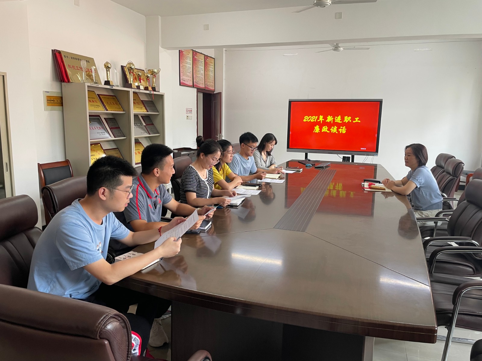 9月23日上午,材料科学与工程学院在机材楼506会议室召开新进职工廉政谈话会,分党委书记杨陵郧,新进教师李诗、胡胜波、苑旭雯、吴晴、王誉翔、张鹏参加此次会议。