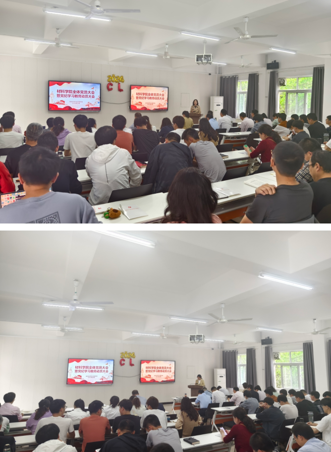 4月22日下午,材料学院在实验楼303教室召开党纪学习教育动员部署会,深入学习习近平总书记关于党纪学习教育的重要讲话和重要指示批示精神,传达学校相关会议、文件精神,就学院开展党纪学习教育作动员部署。学院全体师生党员参会。会议由分党委书记杨陵郧主持。