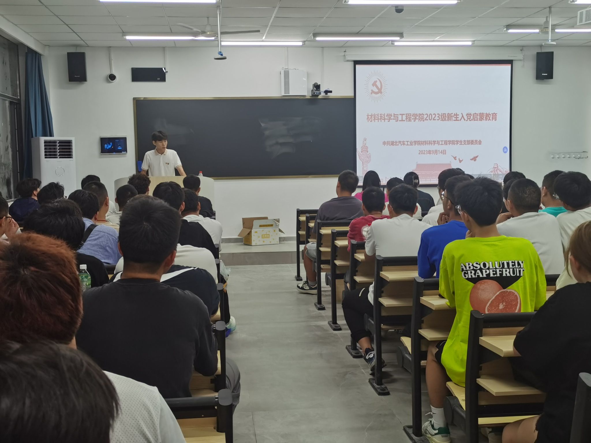为引领新生扣好入党“第一粒扣子”,实现党员发展的早选苗、早教育、早培养,引导新生提高政治觉悟与思想素质,9月14日晚,材料学院在8301、8305、8308三个教室开展了以“激扬青春,点亮信仰”为主题的入党启蒙教育。学生党支部书记詹韩琼、支委成员、党员代表以及2023级全体新生参加活动。