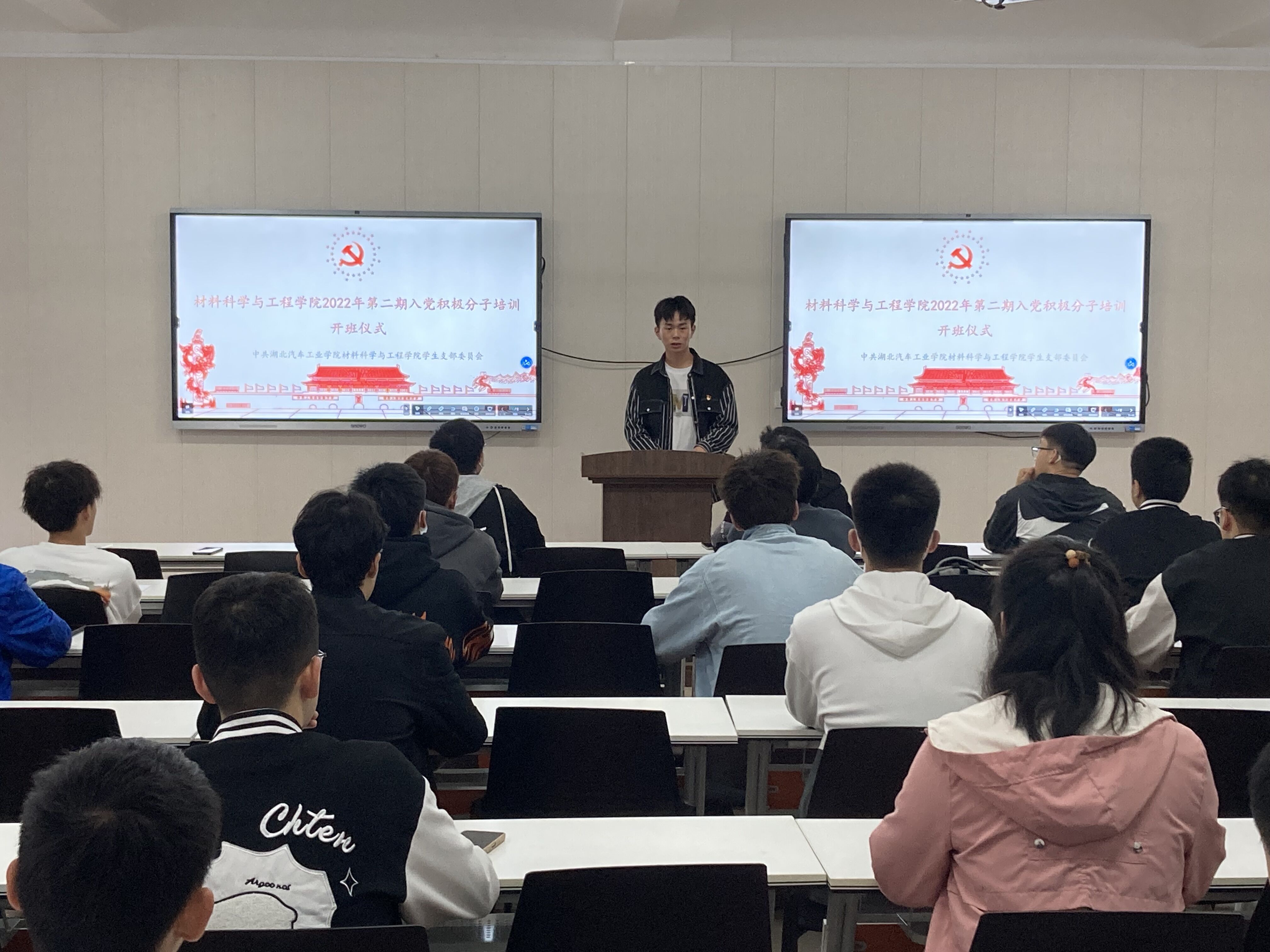 为严格贯彻落实党中央“控制总量,优化结构,提高质量,发挥作用”的发展党员要求,进一步推动入党积极分子教育管理工作的有序开展,提高入党积极分子的党性修养, 2022年11月1日中午12:30,材料学院学生党支部在材料实验楼303教室举行材料科学与工程学院2022年第二期入党积极分子培训班开班仪式。材料学院学生党支部书记詹韩琼,学生党支部支委会成员及学院24名入党积极分子参加了活动。开班仪式由詹韩琼主持。