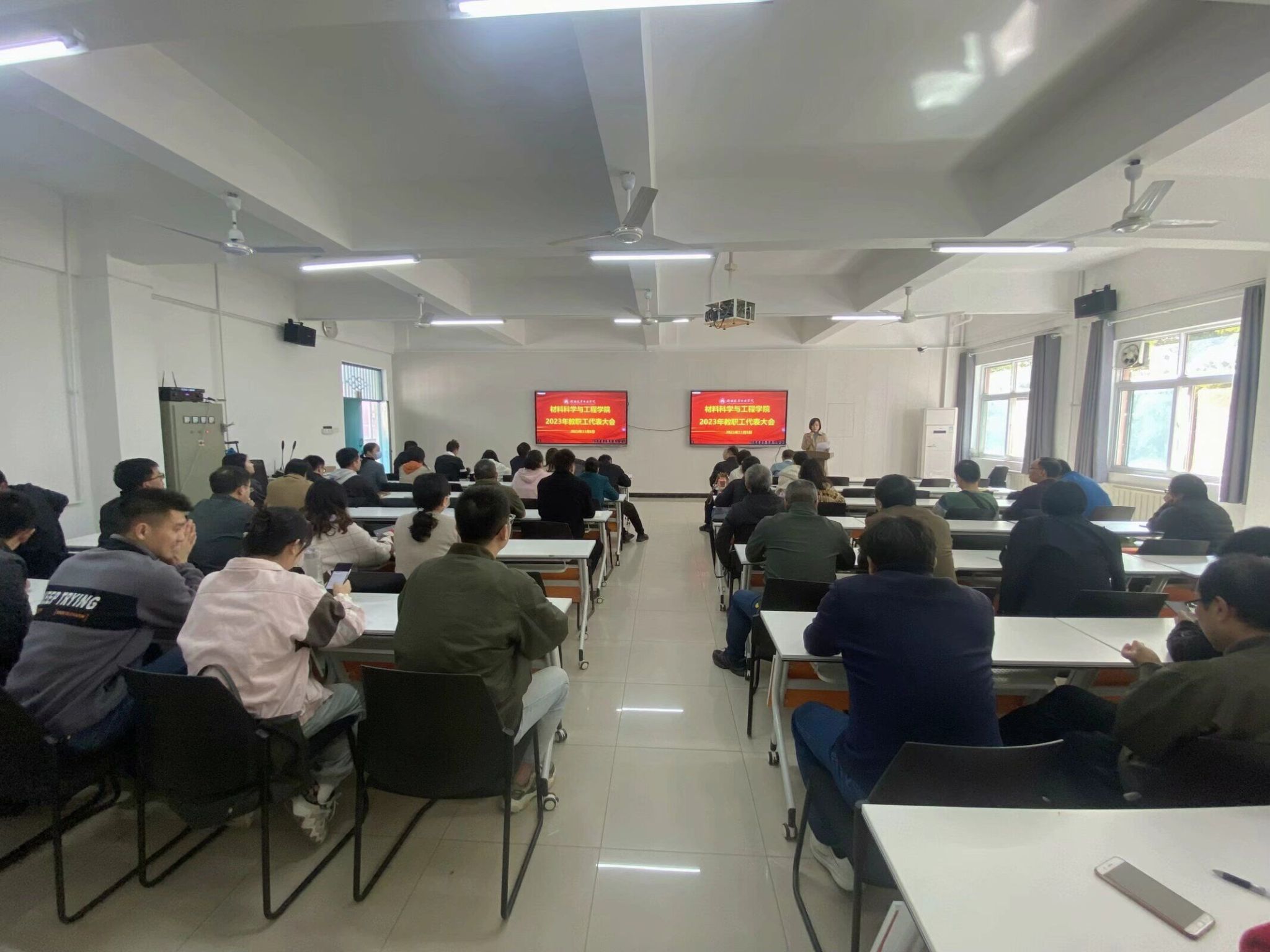 每一位材院人都是学院和学校事业蓬勃发展的见证者、开创者、建设者,杨陵郧在最后鼓励全体教师共同携手、群策群力,珍惜机遇、勇担使命,将个人奋斗融入学校教育事业的发展中,为推动学院和学校高质量发展作出新的更大贡献。
