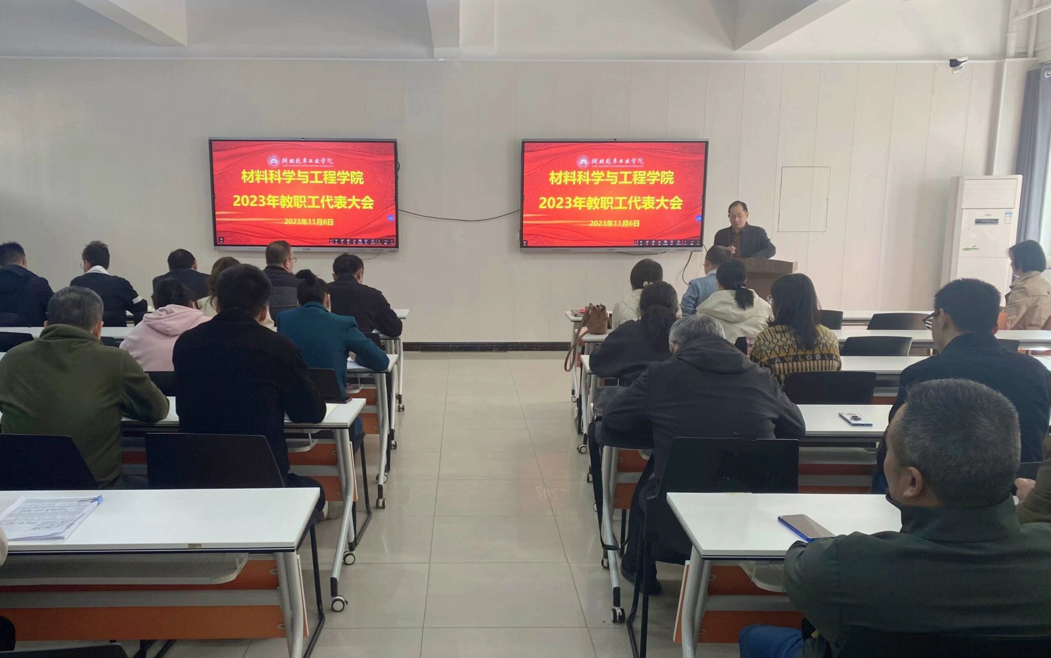 11月6日,材料学院召开了2023年教职工代表大会,材料学院分党委书记杨陵郧主持。全体教师分别听取了材料学院年度工作报告、分工会工作等报告,并提出了意见和建议。会议审议、通过了《材料学院2023年考核绩效工资分配方案》。