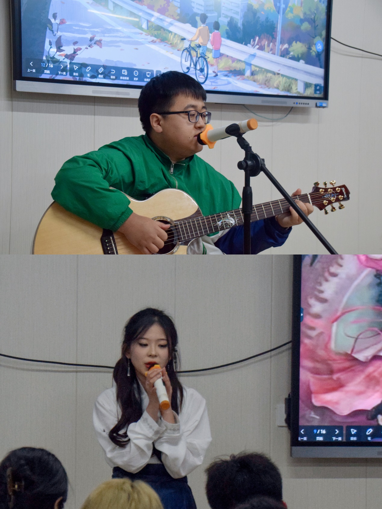 为进一步丰富学生课余生活,营造积极向上的校园文化氛围,展现新时代大学生良好精神风貌,3月24日晚上19:30,材料学院、艺术学院在材料实验楼303教室举行了十佳歌手决赛。材料学院学工办辅导员李诗、艺术学院学工办辅导员郭慧以及往届校级十佳歌手应邀出席。