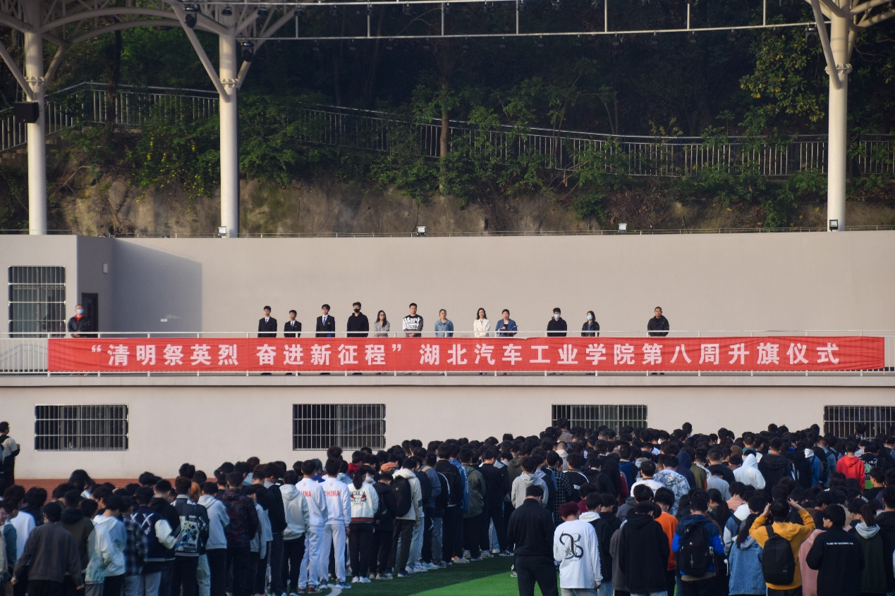 材料学院志联分会主席何成朋作题为《缅怀革命先烈,传承红色基因》国旗下演讲,他讲述了有着“红军赵子龙”之称的贺炳炎英雄奋勇杀敌的故事,号召新时代青年不忘初心、牢记使命,为实现中国梦而努力奋斗;材料学院学生会执行主席王云涛宣读主题为《继承英烈遗志,弘扬时代新风》的倡议书,鼓励青年学生积极开展“网上祭英烈”活动、纪念革命英烈活动、中华经典诵读活动、安全知识教育活动。