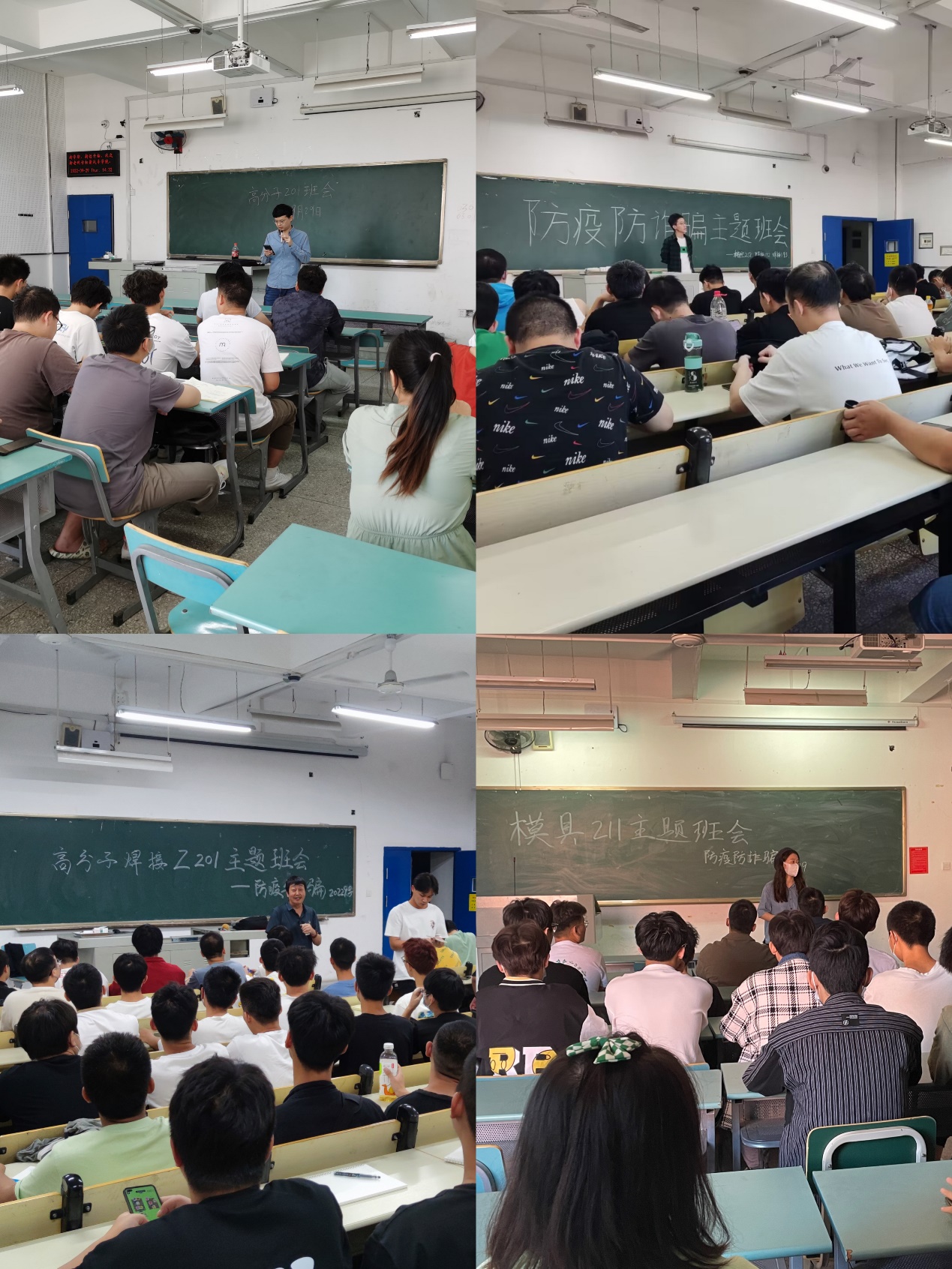 为认真贯彻落实疫情防控要求和学校《防范电信网络诈骗教育专项活动的通知》文件精神,从严抓紧学期初学生安全教育工作,9月28日,材料学院以班级为单位召开了疫情防控暨学生安全教育主题班会,各班班主任通过线上线下相结合的方式扎实开展。