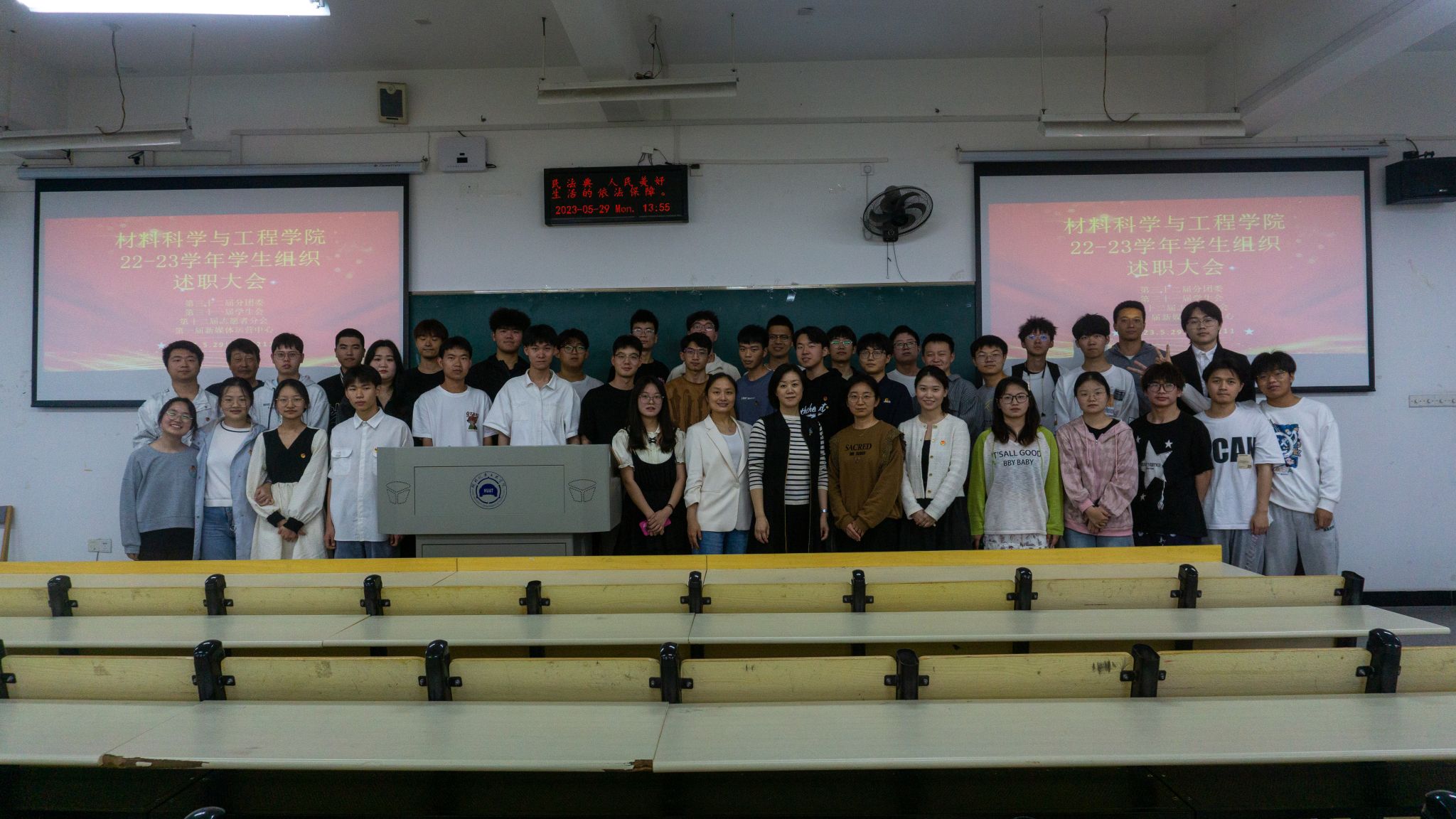 2023年5月29日中午12:30,材料学院2022-2023学年学生组织述职大会在6111教室召开。材料学院分党委书记杨陵郧、分党委副书记何君、学生工作办公室主任詹韩琼、辅导员李志辉、辅导员王誉翔、辅导员李诗和学生组织全体成员参加此次大会。会议由韩卓同学主持。