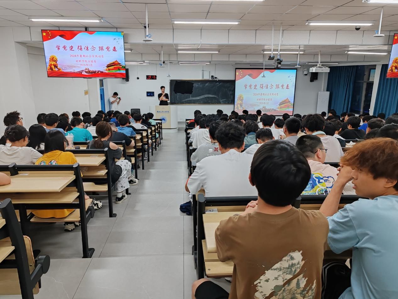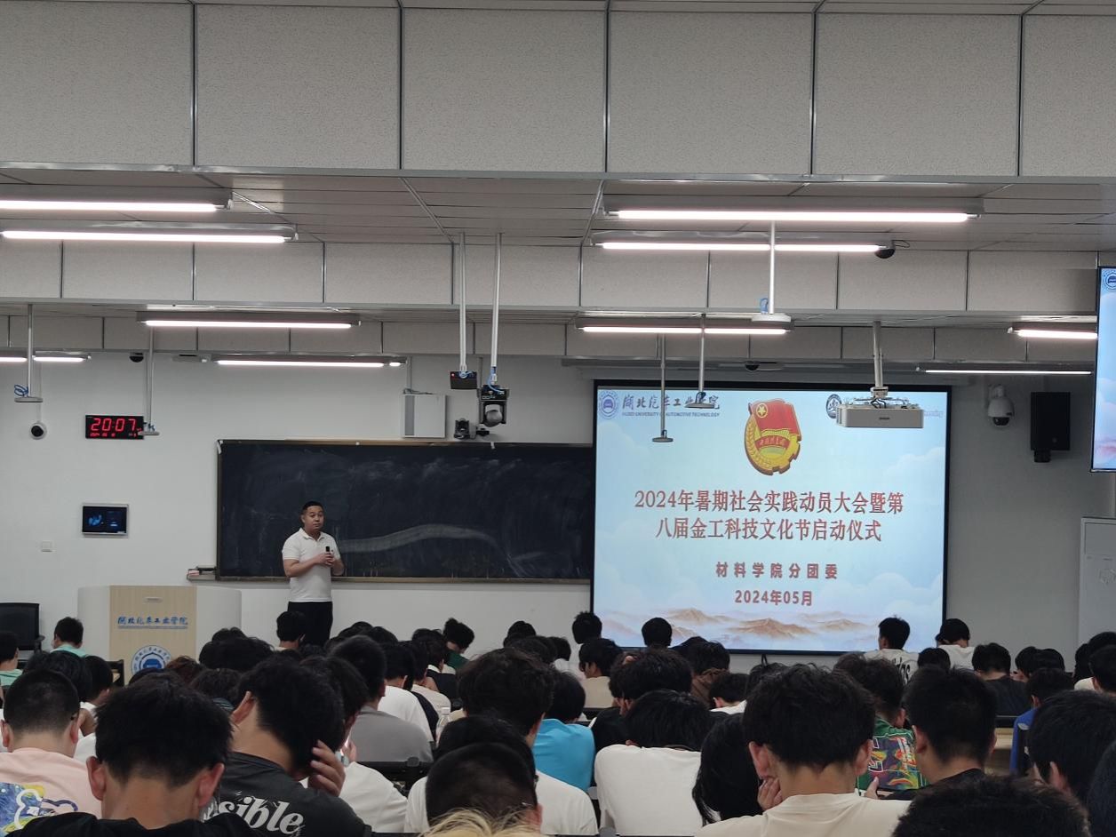 5月10日晚上,材料学院在8209教室开展了2024年暑期社会实践动员大会暨第八届金工科技文化节启动仪式,分团委书记骆无思老师,往届暑期社会实践国奖团队代表郑毅东、陈朱清、汪仁豪,300余名23级、22级学生代表参加了此次活动。活动由郑毅东主持。