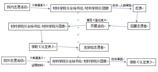 第六条 材料学院学生组织志愿活动申请及时长认证流程: