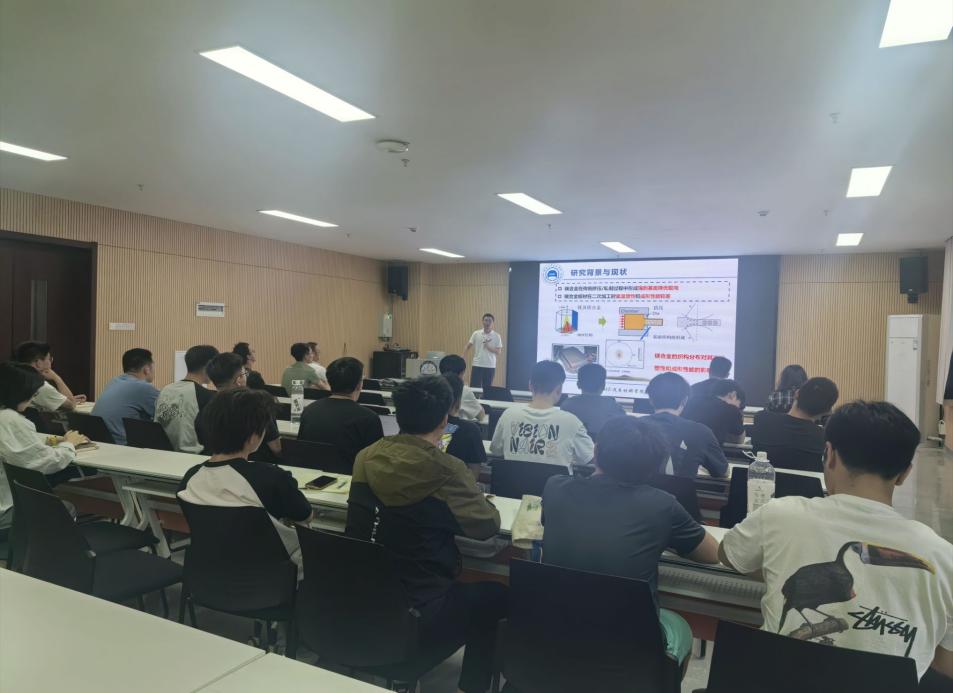 本次博学讲坛主讲人为何超博士,作主题为“织构的正交各向异性对镁合金板材成形行为的影响”的报告;研途讲学主讲人为王羽昕、邱泽旭两位研究生同学,分别作主题为“高炉风口小套结构及设计工艺优化”和“柴油机硅油减振器设计与软件开发”的报告。