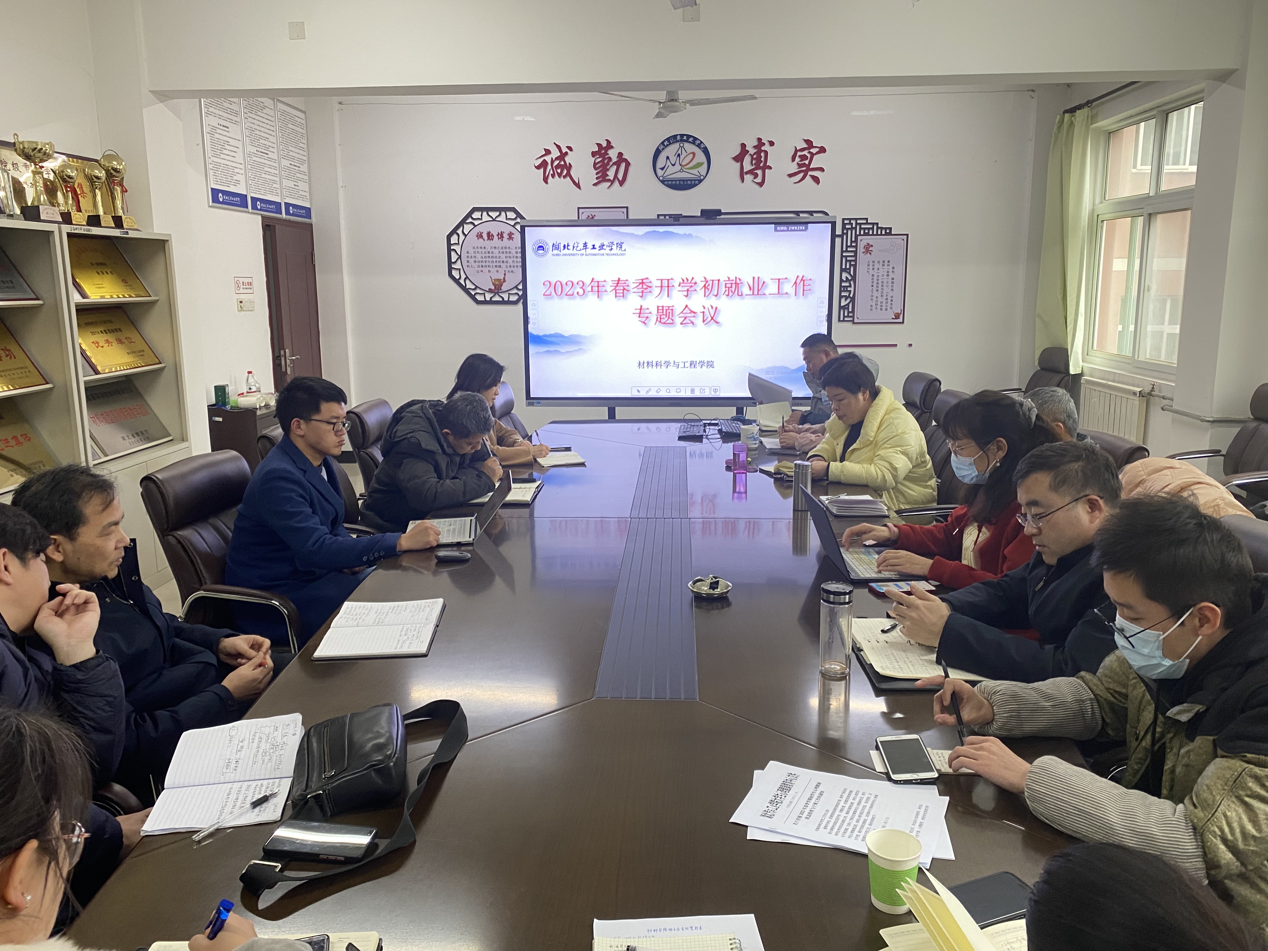 2月20日,材料学院召开2023届毕业生就业工作专题会议。材料学院分党委书记杨陵郧,副书记崔海英,学工办全体辅导员,毕业班全体班主任参加了会议。会议由崔海英副书记主持。