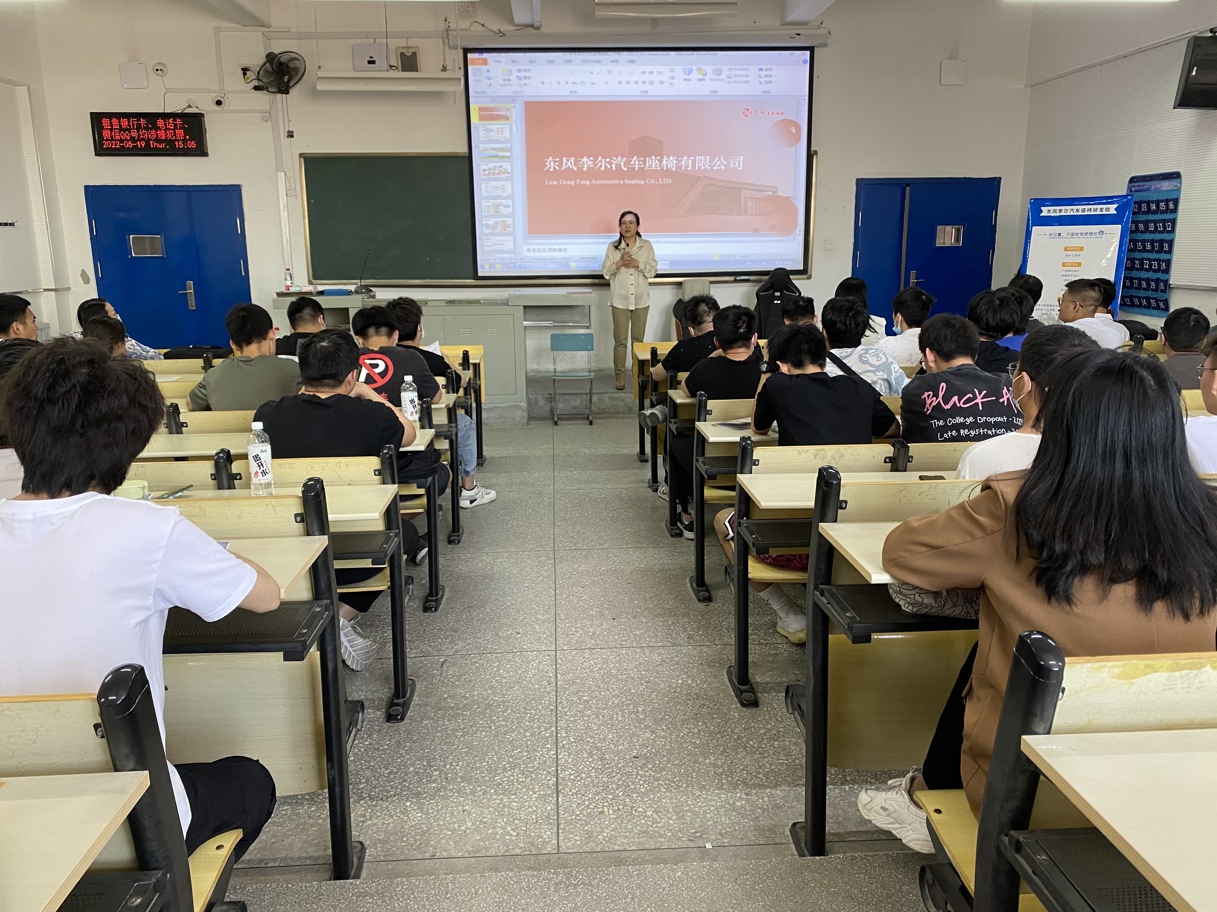为了让19级学生尽早进入就业状态,为18级还未就业学生提供优质岗位,5月19日下午,材料学院邀请了东风李尔汽车座椅有限公司技术中心在六教6313教室开展了招聘宣讲会,东风李尔汽车座椅有限公司技术中心负责人高瑛作为湖北汽车工业学院8741-1班校友来到现场,在宣讲会上为汽院18、19级的同学上了一场别开生面的就业教育课,出席本次宣讲会的有东风李尔汽车座椅有限公司技术中心高瑛,材料学院分党委副书记崔海英,学工办主任詹韩琼,2023届毕业生以及2022届还未就业的各学院学生。