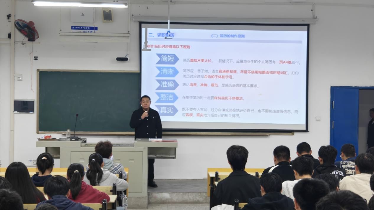 为加强毕业生就业指导和就业服务,切实提升毕业生就业竞争力,10月28日晚上,汽车材料学院在第六教学楼6106教室举办“简历设计与求职心得”专题讲座。学院团委书记骆无思老师担任主讲人,团干部和毕业生代表共100余参加讲座。