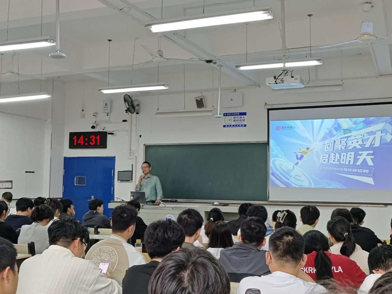 为搭建校企人才对接平台,助力学子精准就业,9月26日,湖北回天新材料股份有限公司在6307举办专场宣讲会。企业人力资源部经理及技术骨干、学院就业工作负责人、相关专业辅导员与2026届材料类专业毕业生齐聚一堂,共话职业发展与合作机遇。
