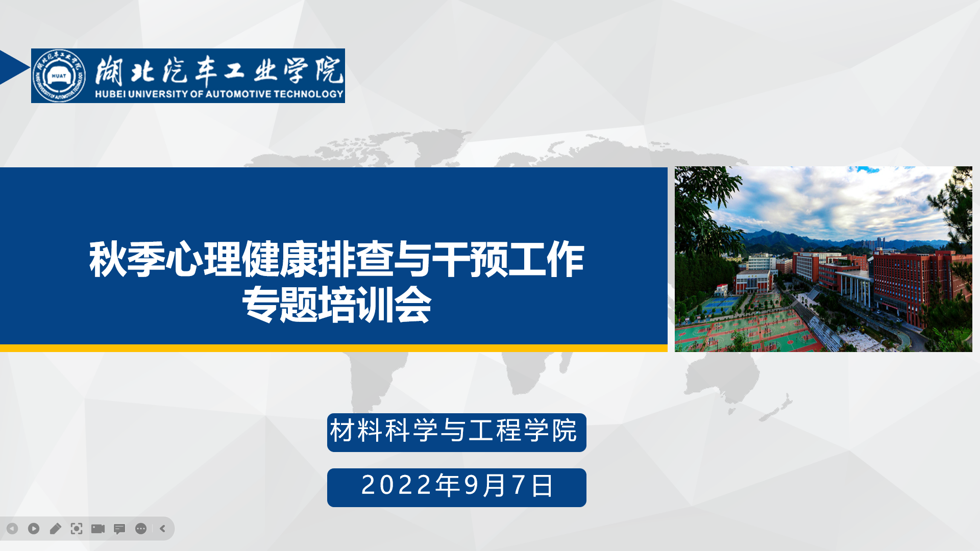 为进一步加强大学生心理健康排查工作,关心关爱每一名大学生的心理健康,9月7日,材料学院利用腾讯会议在线上召开了新学期心理健康排查与干预工作培训会,院分党委副书记崔海英、全体班主任及辅导员与会,培训会由学工办崔海英老师主持。