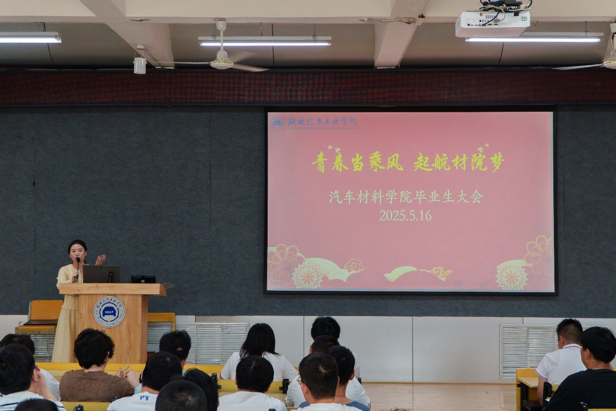 当日上午的毕业生教育大会上,毕业生辅导员李诗带领同学们一起回忆起四年前刚踏入校园时的心情与期待,鼓励大家要坚定理想信念,努力将个人理想融入家国发展,呼吁各位毕业生珍惜情谊,用坚实的成长和优异的成绩回馈母校培育之恩,当好汽院宣传员。