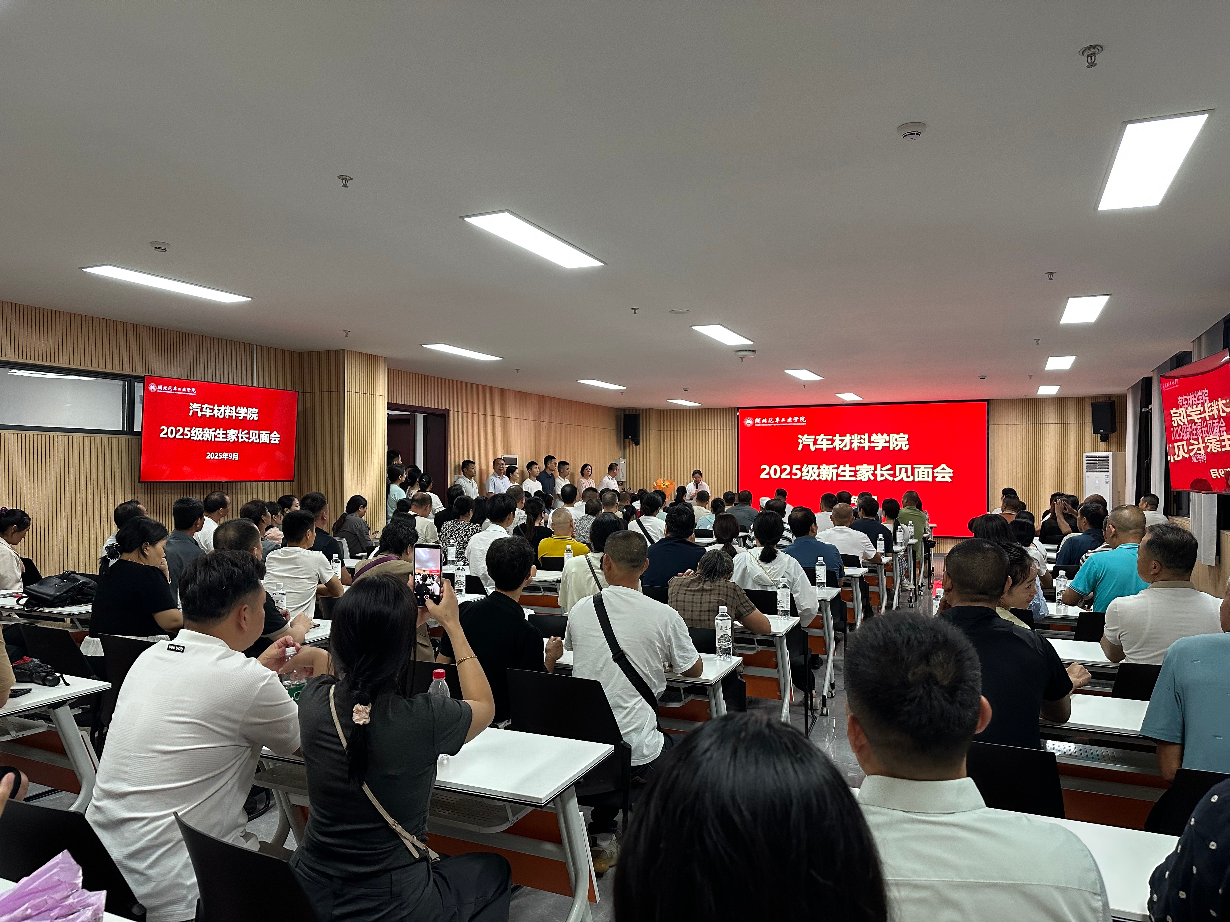 会议围绕学院概况、学科建设、科研成果及学生工作四个方面展开。李建院长首先对家长们的信任与支持表示感谢,并详细介绍了汽车材料学院的发展历程、师资力量和人才培养目标,强调学院始终坚持以学生为中心,注重“产学研创”相结合的教育模式。