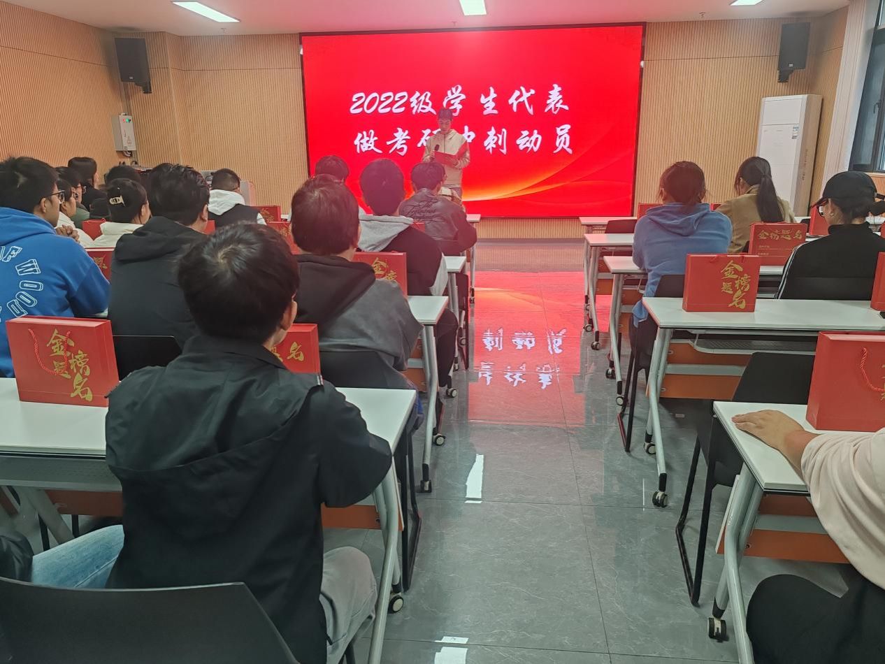 考研学生代表刘天宇登台分享备考心得,以自身经历做考研冲刺动员,句句恳切的话语,展现了学子们的拼搏韧劲,也为备战中的同学注入了“敢拼能赢”的动力。