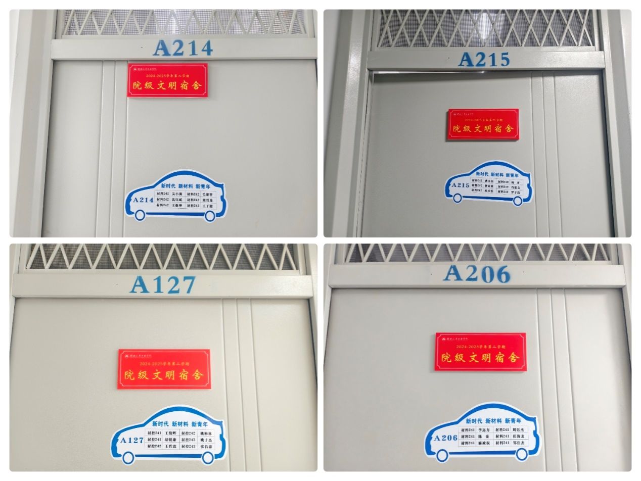 为表彰先进、树立典型,进一步巩固文明宿舍创建成果,发挥优秀宿舍的示范引领作用,近日,汽车材料学院为2024-2025学年第二学期获评“文明宿舍”荣誉称号的13个宿舍举行挂牌仪式。